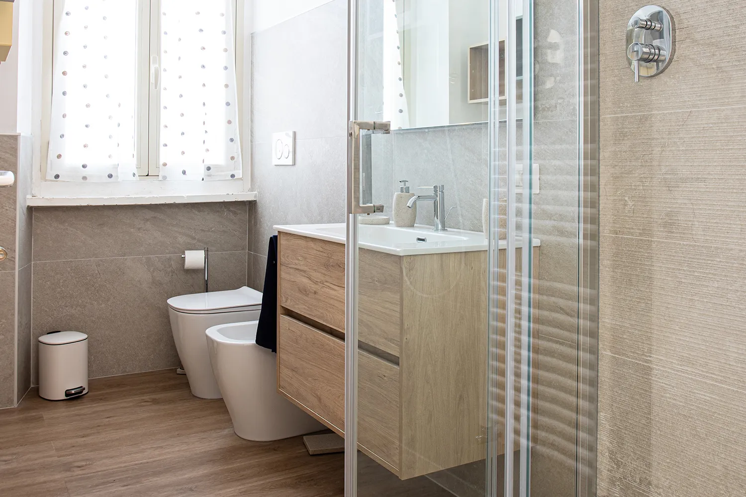 • Aria condizionata e riscaldamento autonomo Uno spazio perfetto per rilassarsi dopo una giornata alla scoperta dell’Umbria. Il bagno principale è moderno e fornito di una spaziosa doccia, lavabo, wc e asciugacapelli.